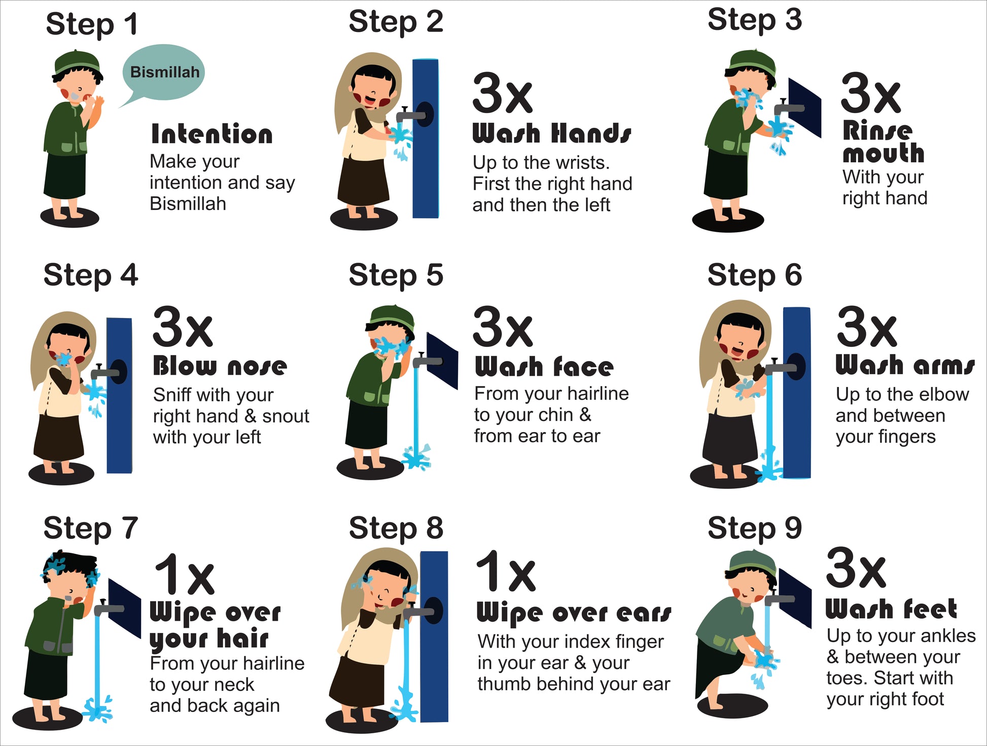 1 × Large Wudu step-by-step wall sticker - A3 size (40x30cm)
